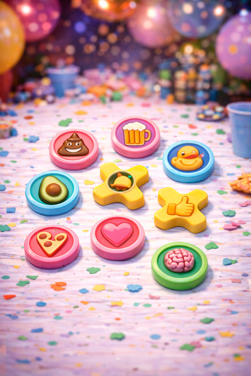 Set di pedine stampate in 3D personalizzabili con nomi, simboli o piccoli dettagli.